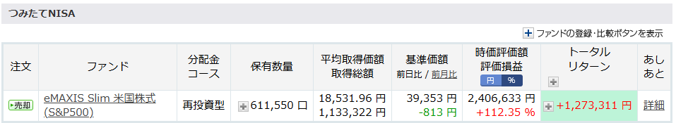 この旧つみたてNISA口座は、2041年まで非課税で運用できます。 基本的には「放置」で、どこまで増えるか見届けたい気持ちが強いです。