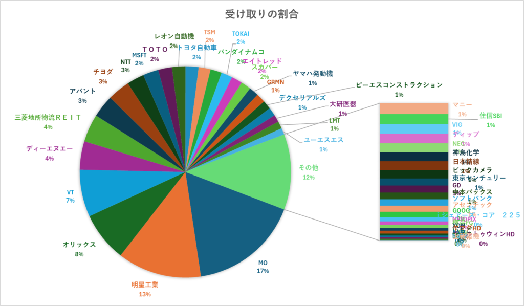 - MO(アルトリア)、明星工業、オリックスなど、長く保有している銘柄が、増配してくれたので今年も貢献してくれました。